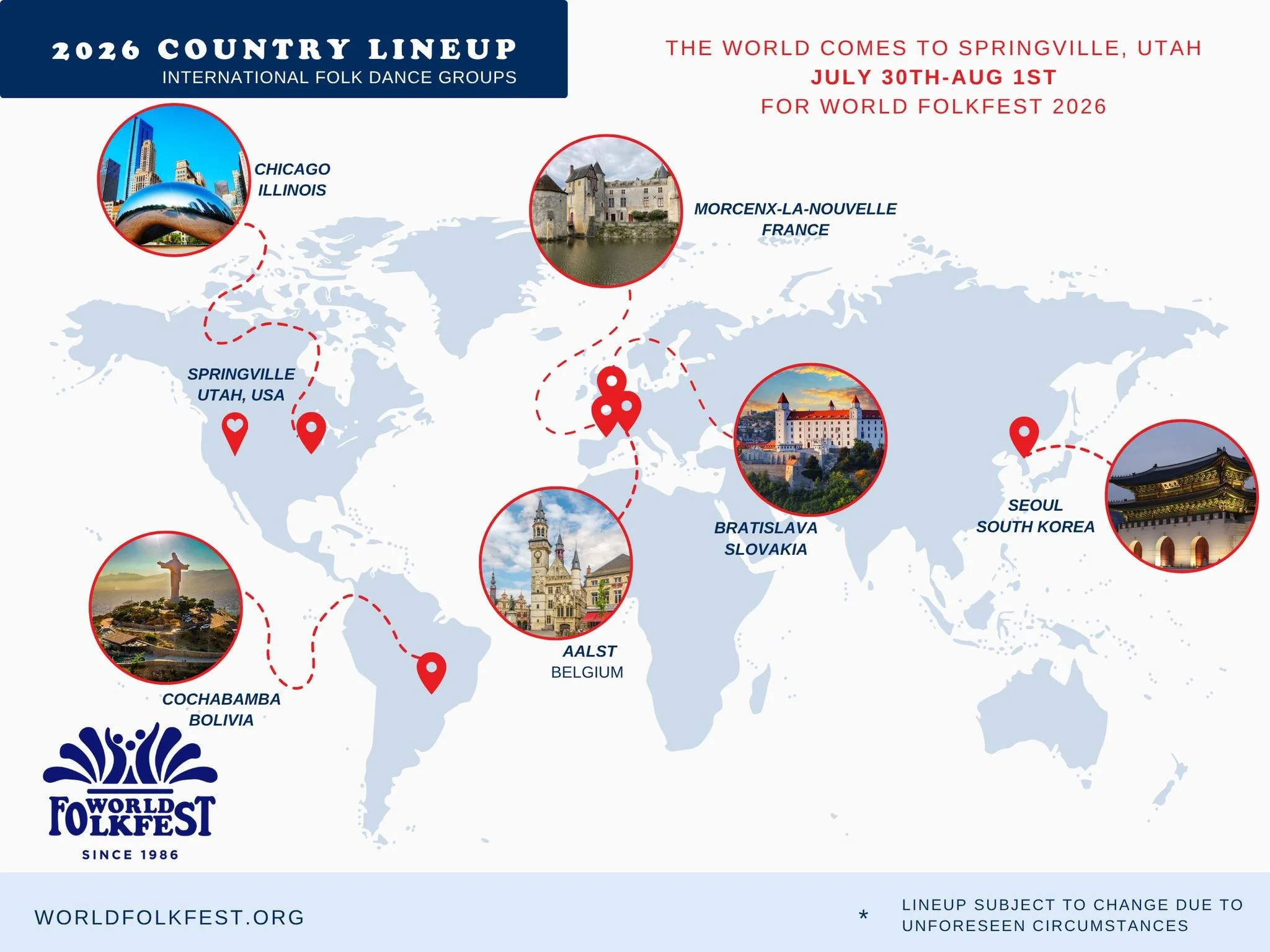Cultural dance groups from all over the world are traveling to Utah this summer to share their traditions and heritage through the art of folk dance. Explore the wonders of the world in a single day in a vibrant celebration of diversity, unity and fun. Enjoy unique performances, traditional costumes, live music, global food trucks, photo-ops, kids activities, giveaways, and much more.
